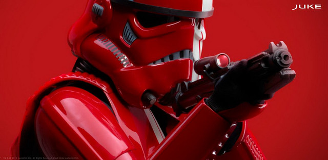 在先前公開的預告當中,一群帝國暴風兵(Stormtrooper)被後方的Juke 吸引,紛紛回頭過來欣賞,但未能一窺這個新版JUKE的全貌。其實這個廣告的精神概念想表達,在一群象徵日本傳統合群觀念、身穿統一、素雅白色裝甲的帝國暴風兵之中,出現了一個突出醒目的紅色暴風兵,來強調其帥氣與搶眼,吸引那些不願與他人相同年輕族群。