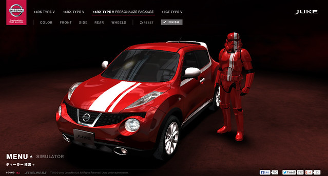NISSAN JUKE × 星際大戰 客製化塗裝展示3D 立體網站:http://www.nissan.co.jp/SP/JUKE/PERSONALIZE/