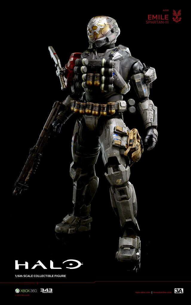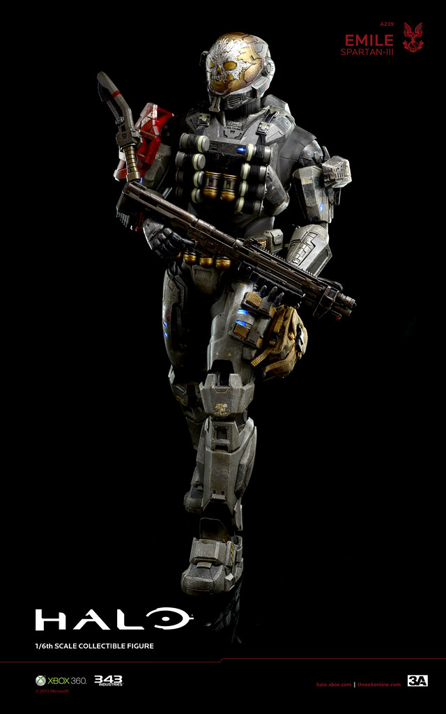 threeA 繼去年發行的“SPARTAN MKV Commando”之後,宣布再度推出HALO 系列作品第二彈「Emile A-239」與「Spartan Mark V EVA」!出自百萬級系列電玩「HALO」2010 年所發行的「最後一戰:瑞曲之戰」(Halo: Reach),Emile A-239 是UNSC (The United Nations Space Command)特種作戰指揮部第三特種作戰群的一名斯巴達三戰士,他在Noble 小隊的呼號為Noble 4,擅長近戰突擊,官階准尉。