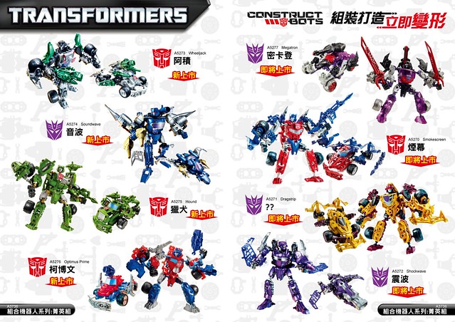 此番新系列組合機器人將變形金剛主要角色的經典造型以”組合式”全新設計發行,首波角色涵蓋大家熟悉的柯博文、密卡登、大黃蜂、閃電、阿積、音波、鐵皮、天王星...等 (雅希:我沒有?!!哭哭)可供玩家來收集,且從這份最新的型錄內容來看,還會有更多角色陸續推出~請密切注意!