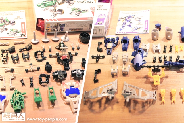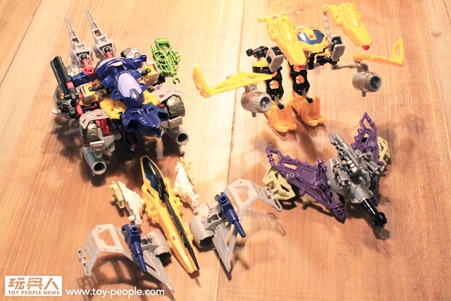 ▼ 由於是三種變形設計,零件比起領袖包多了些,飛行器與陸地工具的裝備可以擇一裝配也可以混搭接合