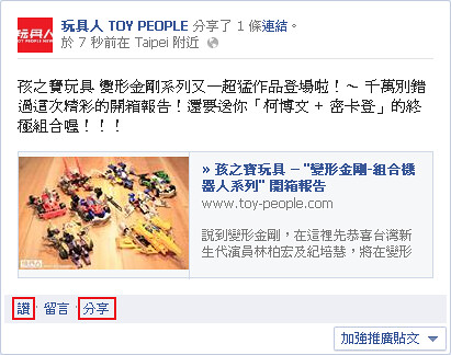 2.「玩具人 TOY PEOPLE NEWS Facebook 粉絲團」上側。