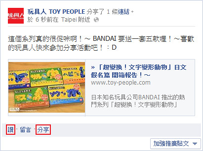 2.「玩具人 TOY PEOPLE NEWS Facebook 粉絲團」上側。