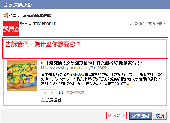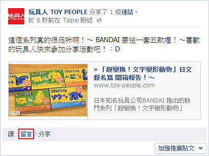(留言區網址:https://www.facebook.com/toypeople/posts/505859749489648)