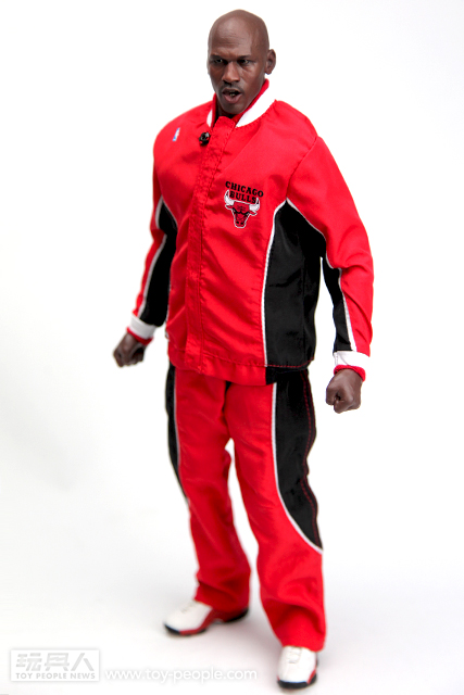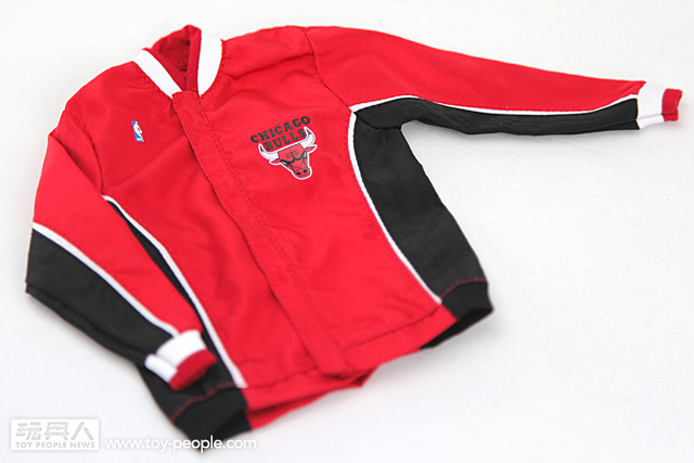 ▼ 首度於零售版出現的經典公牛隊紅色熱身服,領口、袖口也以收縮材質製作,完全將熱身服1/6 化!~