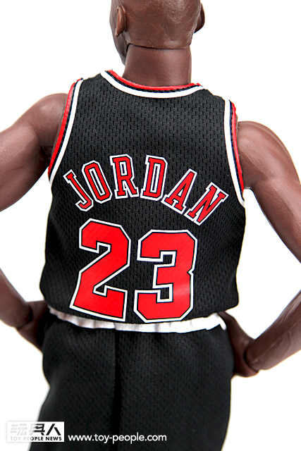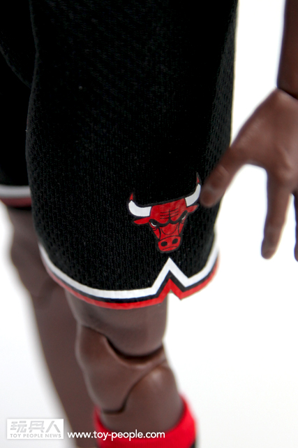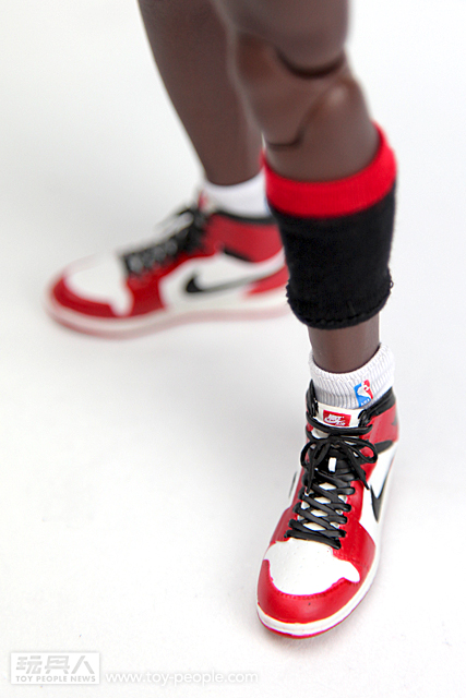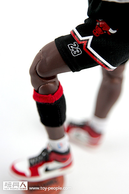 ▼ 接下就是重頭戲的喬丹人偶啦!~ 除了籃球裝之外,也相當注重地重現了喬丹經常配戴的紅色護肘與黑色護膝。