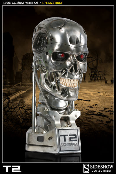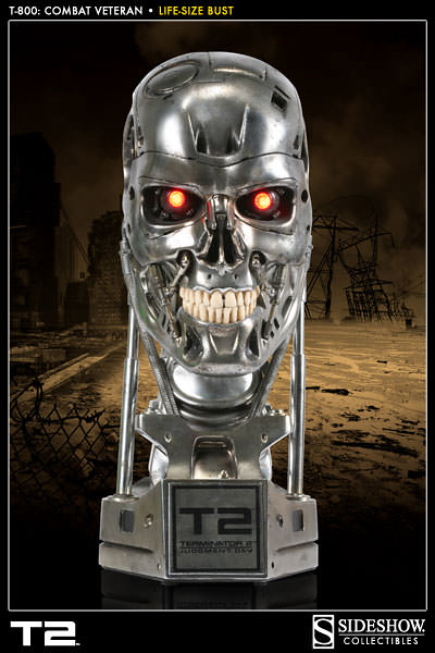 獲得特效團隊的支援,Sideshow 打造了完全百分百仿製電影道具的T-800 內骨骼胸像,T-800 雙眼內建可發光功能、並且可打開頭顱置入CPU 微處理器。一共發行兩種版本:彷彿剛出廠新品的普通版與經歷許多戰鬥而舊化的戰鬥版(Combat Version)。目前預計將重新發行戰鬥版(Combat Version),普通版是否重新推出則不得而知。