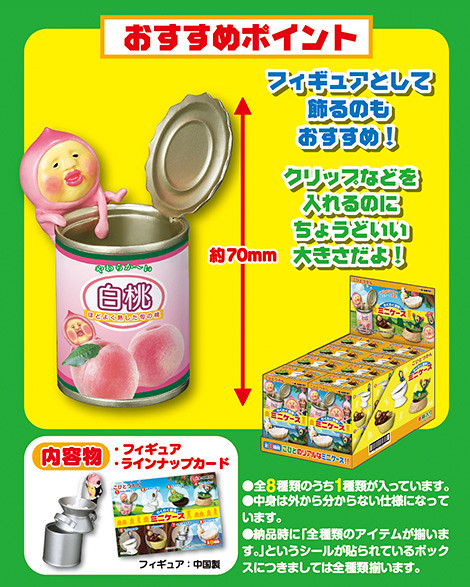 先前我們曾經介紹過由RE-MENT所推出的迷你收納盒。此系列造型是以醜比頭的生活場景所設計,而在原作中能發現醜比頭的秘密生活正是引人入勝的精華所在,因此大受好評推出第2彈也是預料中事喔!本次收錄共計8款,每款都十分可愛逗趣。單一售價約473日圓,每款因為造型關係大小不一,但盒裝大小約110高 ×70寬×40深mm,可以作為大小參考依據。預計10月7日於日本推出,提供給大家參考!