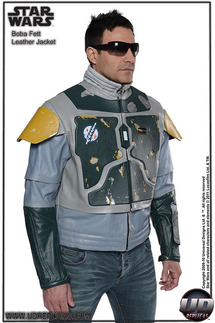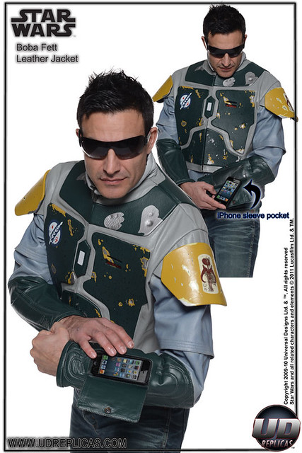 UD REPLICAS Star Wars BOBA FETT™ Leather Street Jacket Featuring iPhone Sleeve Pocket