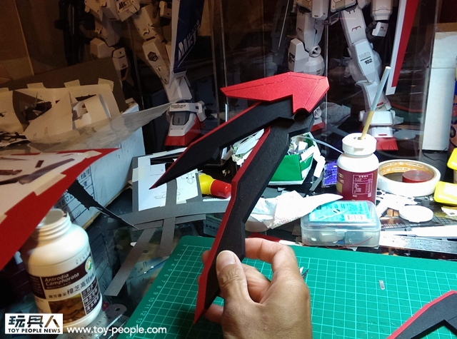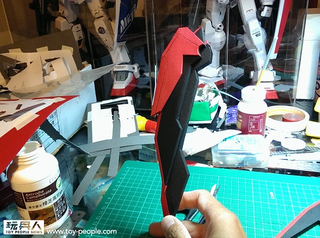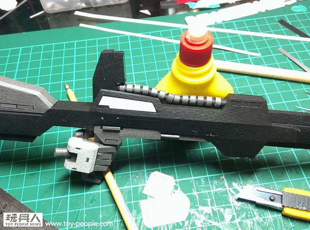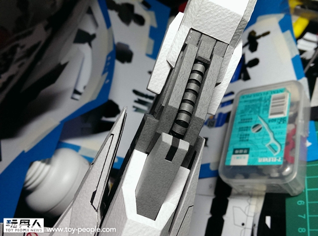 ▼ 原作並未將頭部兩側的氣孔(還是火神砲啊?)做出來~~那就自己加啦。