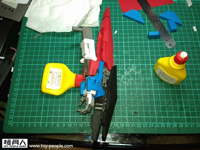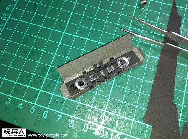 ▼ 兩邊都許要加上軌道,(因為這Z鋼彈的翅膀是由四片疊成的,而可以展開的部份為三片)再於翅膀軌道的銜接處兩邊都加上磁鐵。