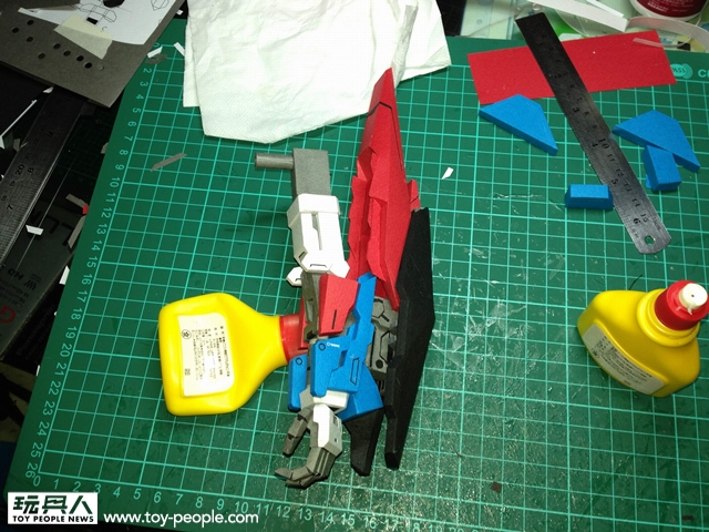 ▼ 再來是Z鋼彈非常漂亮的翅膀,由於要將它改造成可以"開合"並固定。所以我就在內部給他加裝軌道。(再配合上磁鐵的話,就可以順利的依照軌道來作開合)