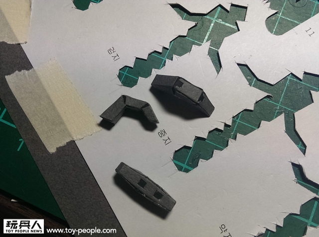 ▼ 這個紙模的特色就是”複雜”,但層次感豐富。(腰部白色的部分就有八個零件)