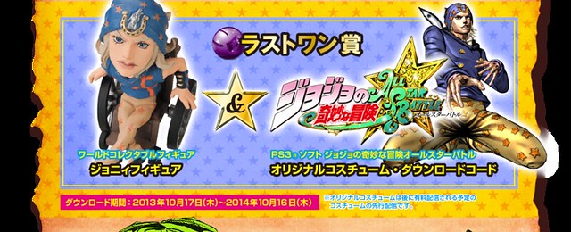 LAST ONE 賞 WCF 特殊塗裝喬尼人偶 & 「JOJO冒險野郎群星大亂鬥」喬尼服裝下載碼