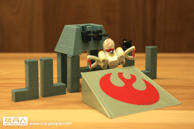 ▼ 與基本組合相同,一樣附有組合限定玩偶。雖然玩法同樣是將鳥發射出去擊倒場景積木,不過中型組合使用的不是彈弓而是迴力車!並且頗具巧思地,依照場景的內容,將經典的X-戰機(X-wing)、無重力機車(Speeder Bike)設計成迴力車造型,仔細看就會注意到路克所駕駛的X-戰機 後方也重現原作的模樣,搭載著R2D2 喔!(光這迴力車就超值得買啦!XD 多出幾款吧~)