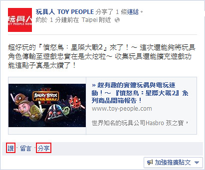2.「玩具人 TOY PEOPLE NEWS Facebook 粉絲團」上側。