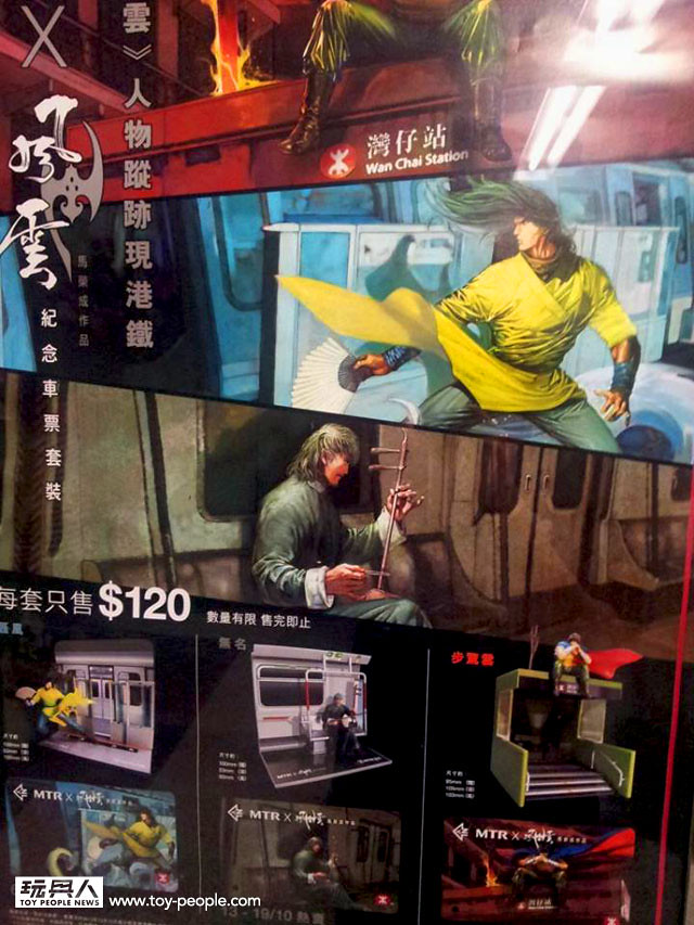 香港知名的武俠漫畫《風雲》即將於今年結束連載,這個自1989 年(24年)連載至今、陪伴了許多港台兩地漫畫迷一同成長的經典漫畫,將透過各種方式推出相關的紀念活動。繼先前Hot Toys 所發佈的CMS04 – 風雲:步驚雲 之後,也將與港鐵(香港鐵路有限公司 Mass Transit Railway 簡稱MTR)合作,推出聯名紀念的人偶與車票套裝組合紀念包。