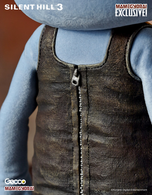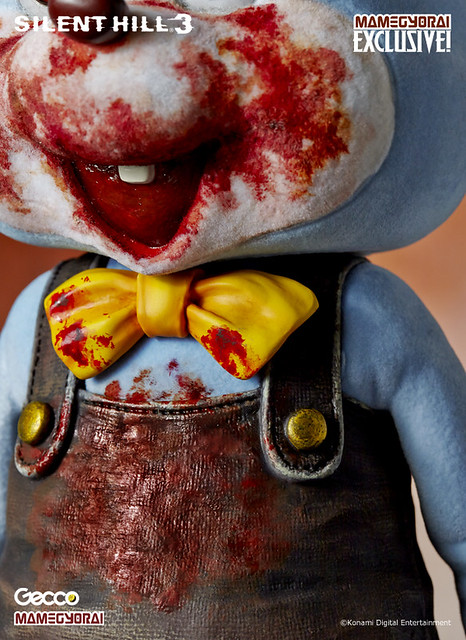 從官方公佈圖片來看,特別選了類似絨毛材料來表現娃娃的質感,而鮮豔的顏色與濃厚舊化的服裝質感產生強烈對比,襯托出難以言喻的強烈存在感。忠於原作的血跡在嘴巴上有高水準的表現,另外胸前與領結的血跡則用凝固的厚重感呈現,真的可見作者不馬虎的用心。配備兩款經典武器「舊化鐵管」以及「血腥電鋸」。血腥電鋸上還寫著「T0 You My Dear (給親愛的你....)」 ,真的是太恐怖了呦~!