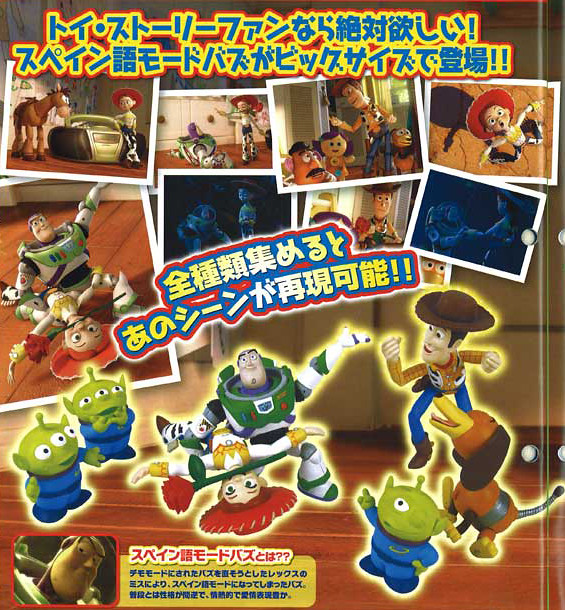 TakaraTomy ARTS 將推出出自「玩具總動員3」經典場景的西班牙「歡樂舞蹈時光」主題轉蛋。在第三集中、主角之一的巴斯光年因為被重置而導致失去記憶,伍迪一行人為了將其轉換回原本的巴斯,卻意外地切換到了“西班牙語模式”。切換之後的巴斯連性格也變成像是熱愛舞蹈的西班牙人一樣的熱情、愛跳舞,因而導致了許多爆笑的場面。