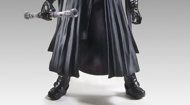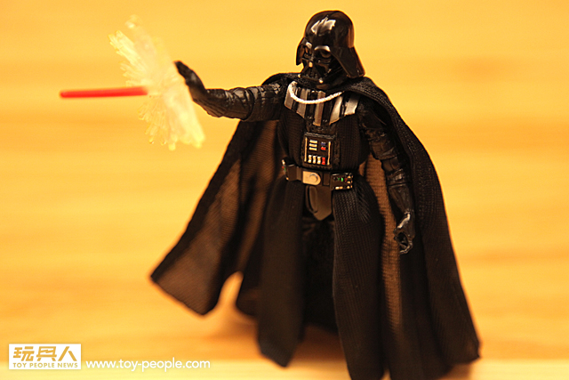 ▼ 黑武士達斯維德配備了布製的披風、服裝,並相當講究地利用銀色的繩子重現了披風上的鐵鍊。可利用特效零件重現黑武士達斯維德,反彈韓‧蘇洛(HAN SOLO)經典的“shooting first”場景。