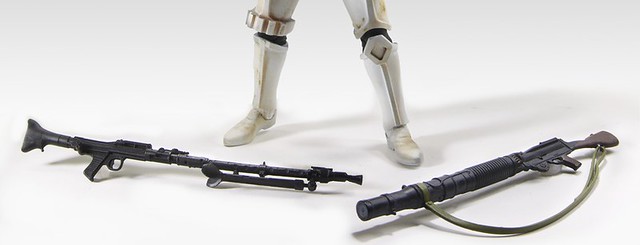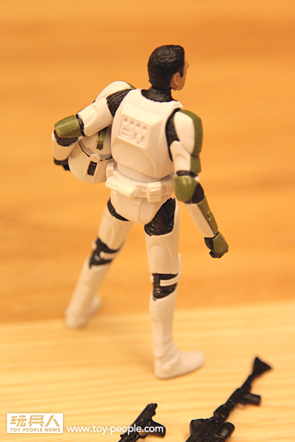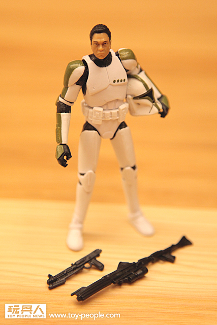 ▼ 星際大戰玩具非主角群的熱門款式之一,熟悉星際大戰的玩具人一定知道,複製人綠色的塗裝代表的是中士(SERGEANT)軍階。這一個款式製作了能夠脫盔的造型,並且搭配了複製人士兵的經典武裝:DC-15A 雷射步槍(DC-15A blaster rifle)以及E-11 雷射步槍(E-11 blaster rifle)