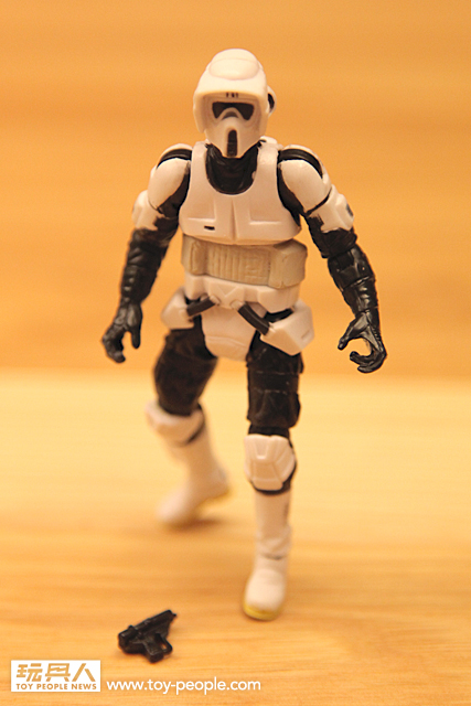 ▼ 帝國斥侯兵搭配的專屬手槍Scout trooper blaster pistol 可收納於小腿側,這一款人偶相較於其它款式多了可以將雙腿打開的關節,似乎是為了對應未來可能發售的反重力機車。
