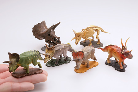 日海洋堂玩具公司的カプセルQミュージアム 膠囊Q博物館的恐竜発掘記(恐龍挖掘記)系列預計2013年10月20推出トリケラトプス 三角龍,以各式各樣的三角龍呈現有三角龍的頭骨骼、全身的三角龍骨骼等等約有六款種類,一轉約300元日幣,喜歡膠囊Q博物館恐龍挖掘記系列的玩具人可以考慮購買一下歐!