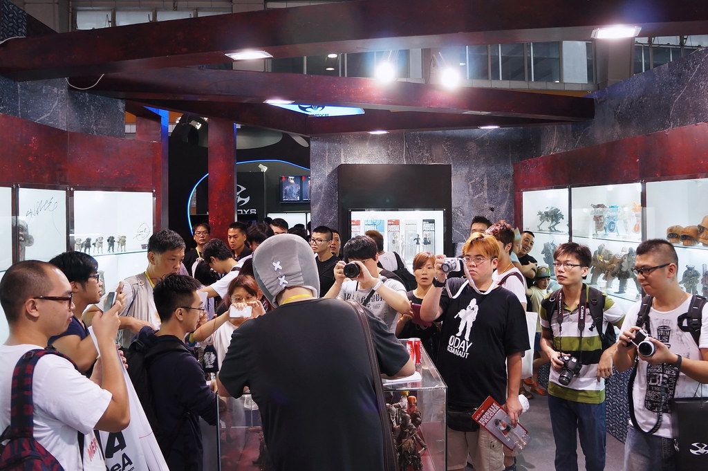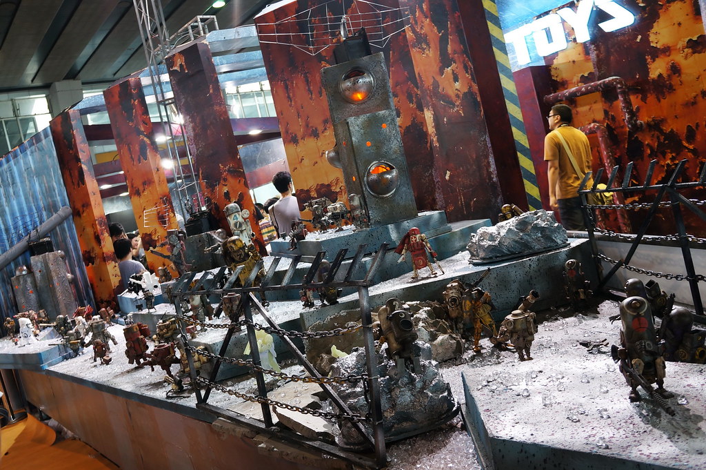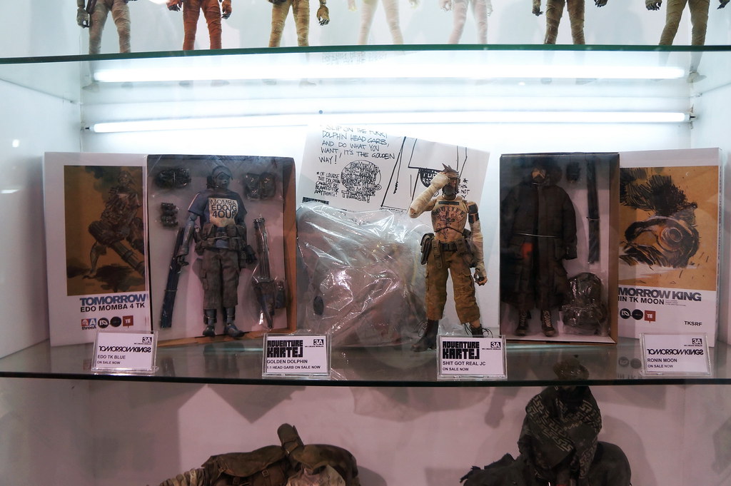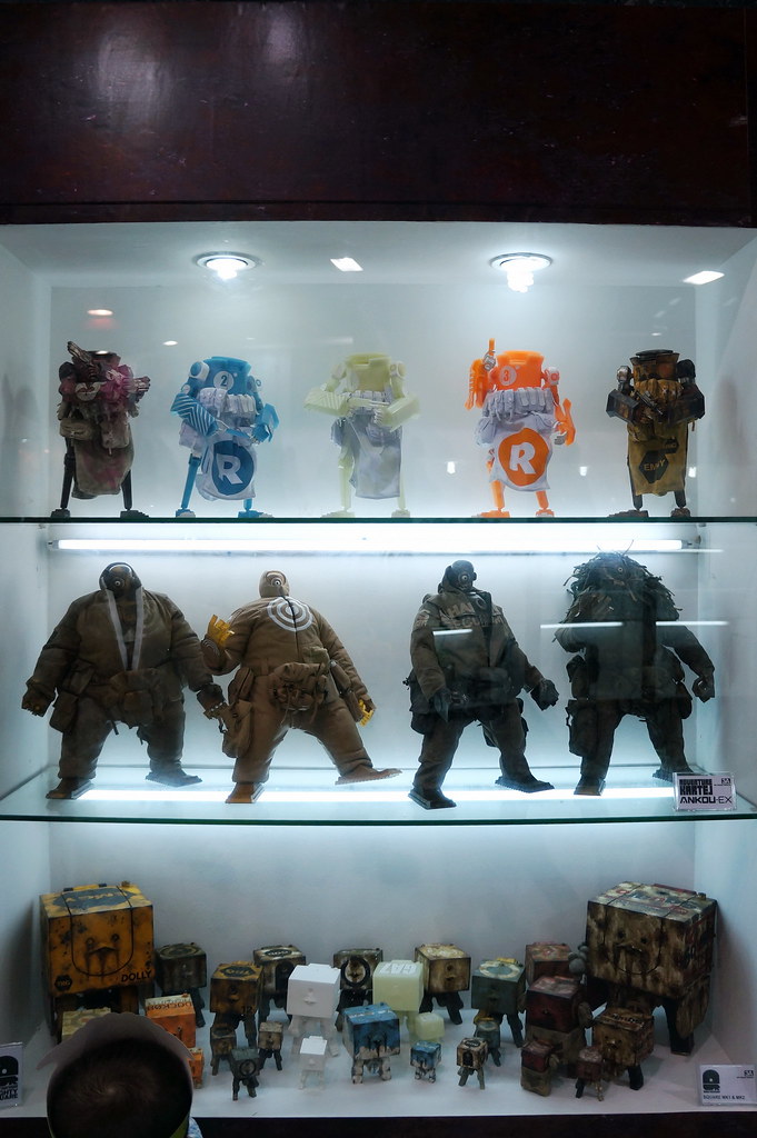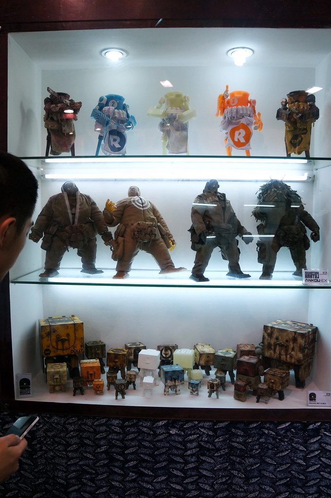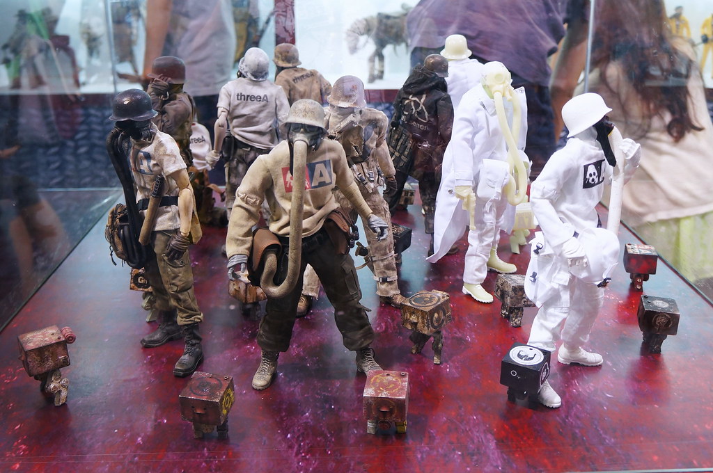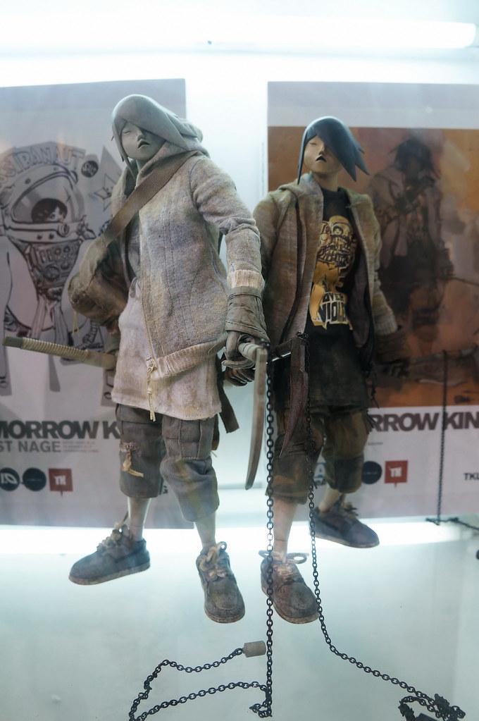 除了在會場有販售限定品之外,也展出了多款尚未公佈如:TKLUB #4 的原型、陰屍路等等的新作品喔!此外,巨大場景的呈現搭配著舊化的threeA 作品真的是非常的養眼啊!會場甚至還有1:1 Life Size 真人比例的Golden Dolphin 與Peppermint Grove!廢話不多說,各位玩具人快來好好欣賞一下吧!