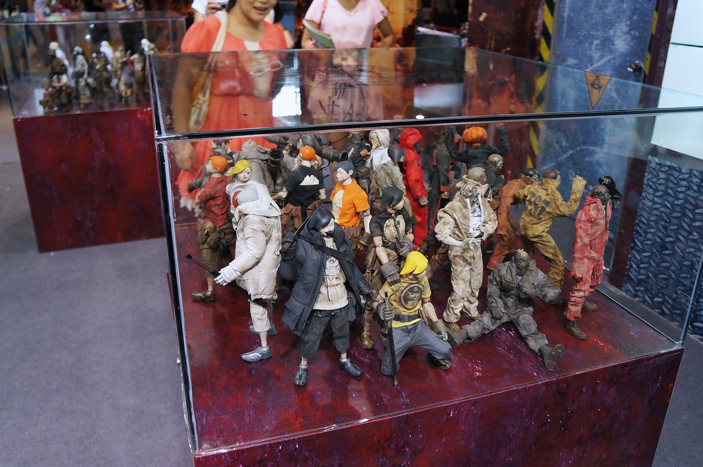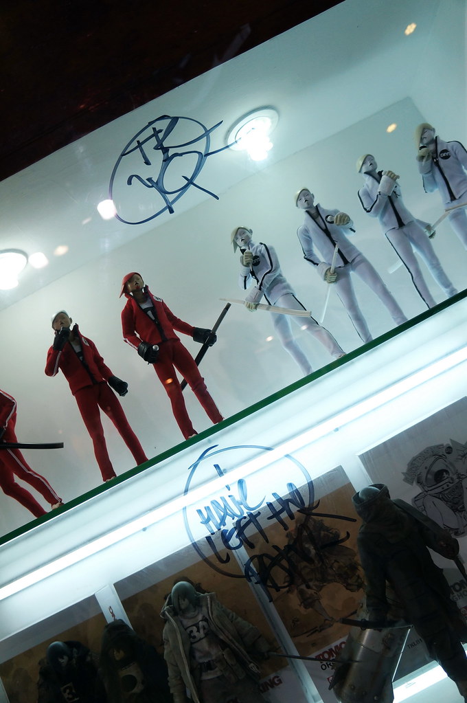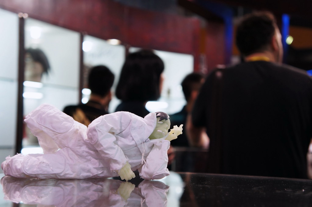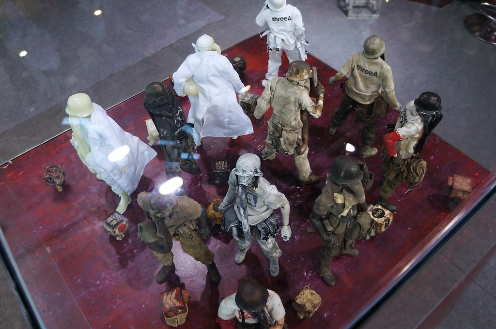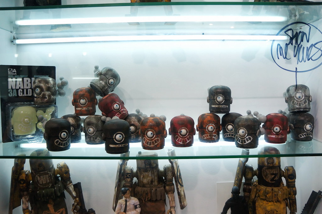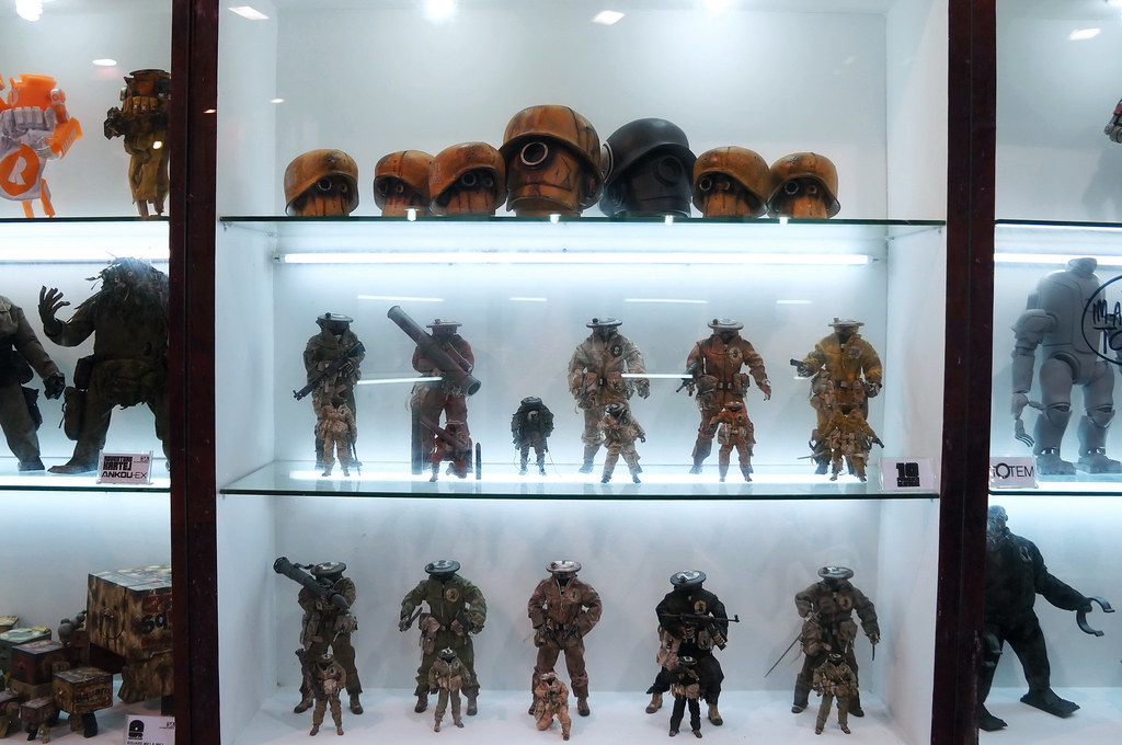 除了在會場有販售限定品之外,也展出了多款尚未公佈如:TKLUB #4 的原型、陰屍路等等的新作品喔!此外,巨大場景的呈現搭配著舊化的threeA 作品真的是非常的養眼啊!會場甚至還有1:1 Life Size 真人比例的Golden Dolphin 與Peppermint Grove!廢話不多說,各位玩具人快來好好欣賞一下吧!