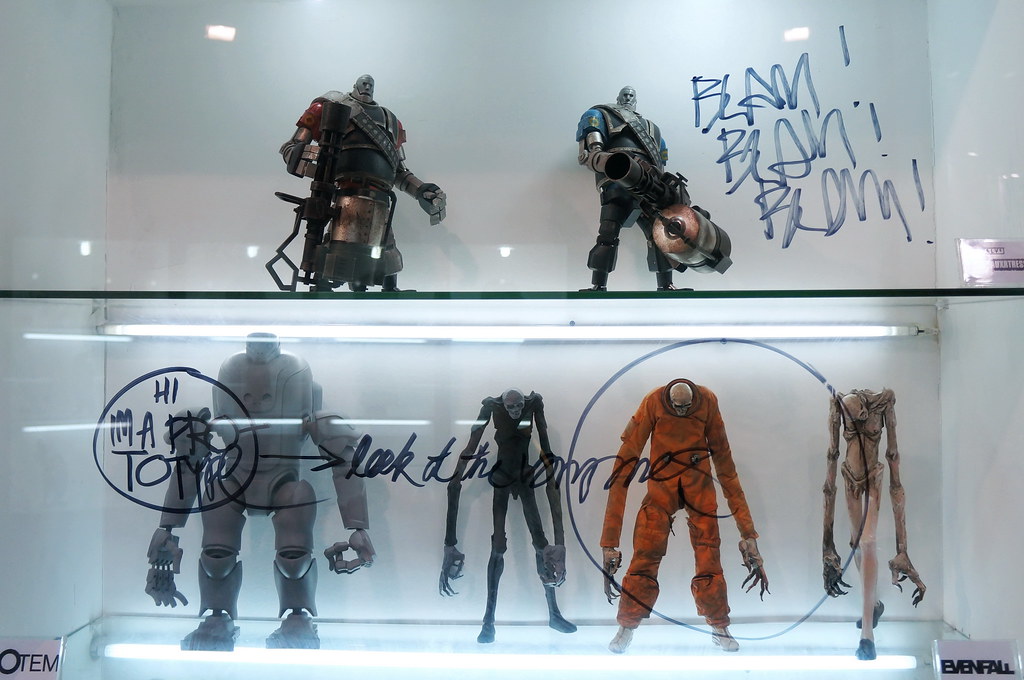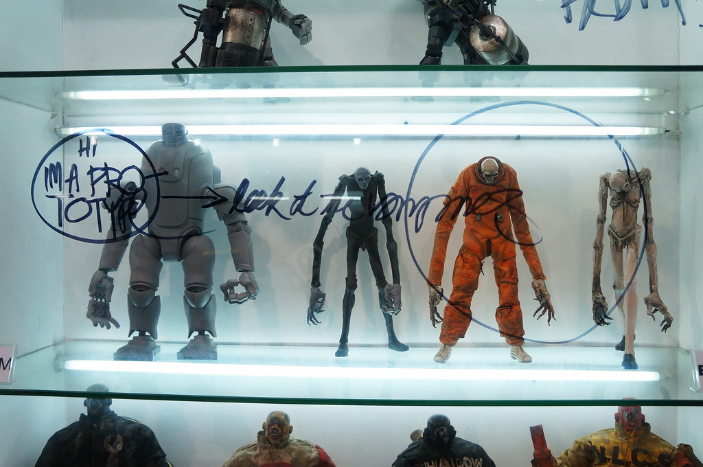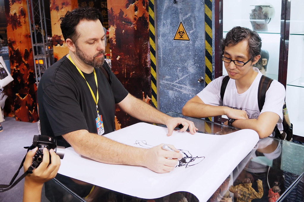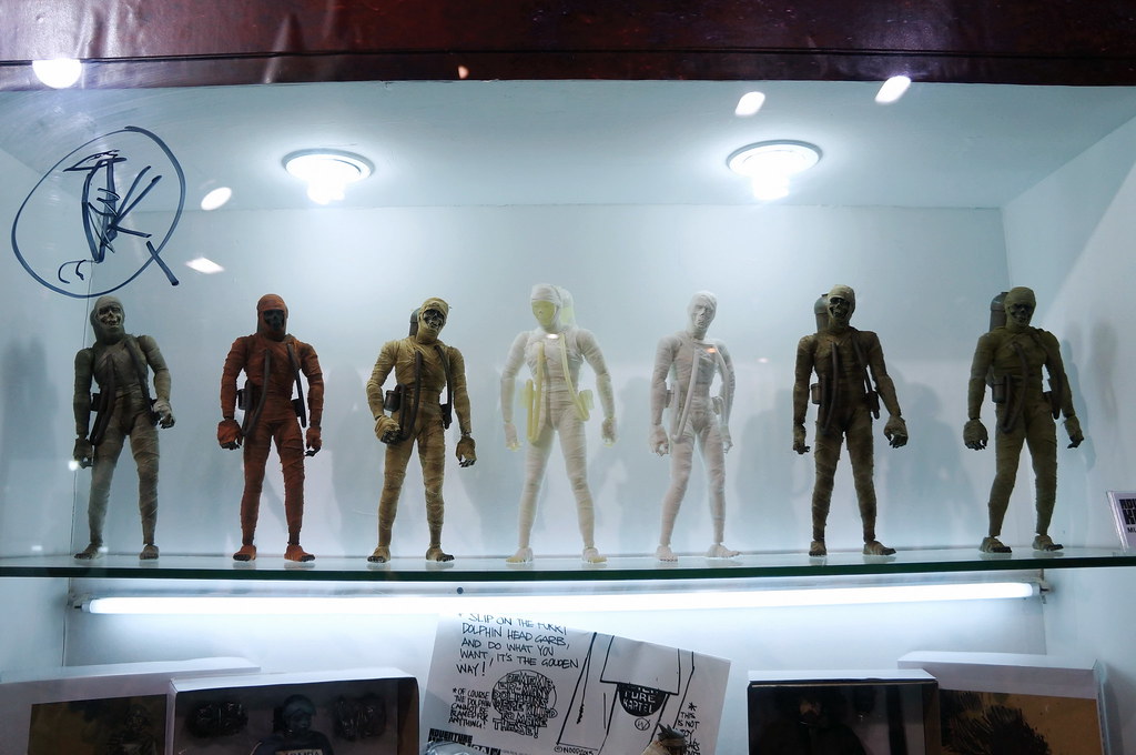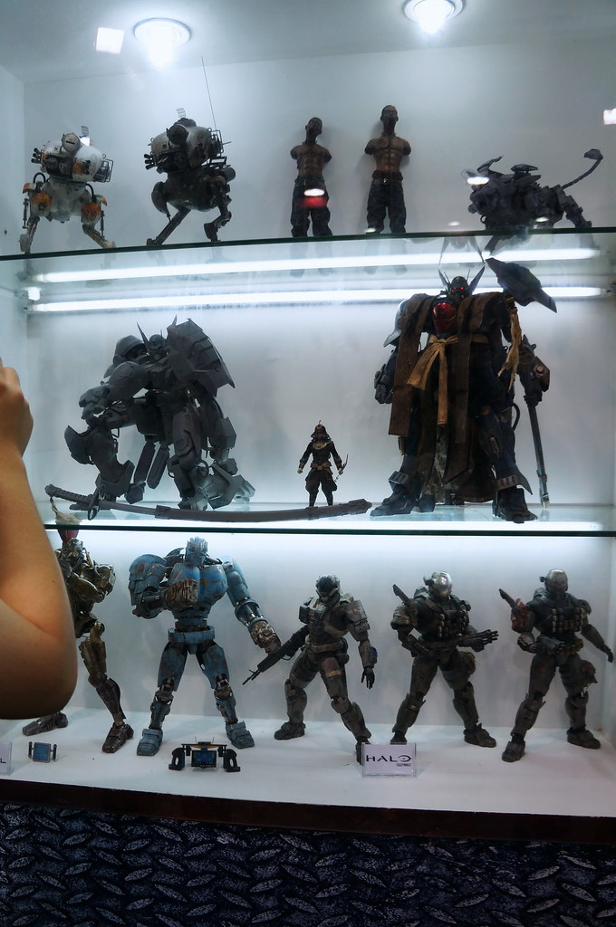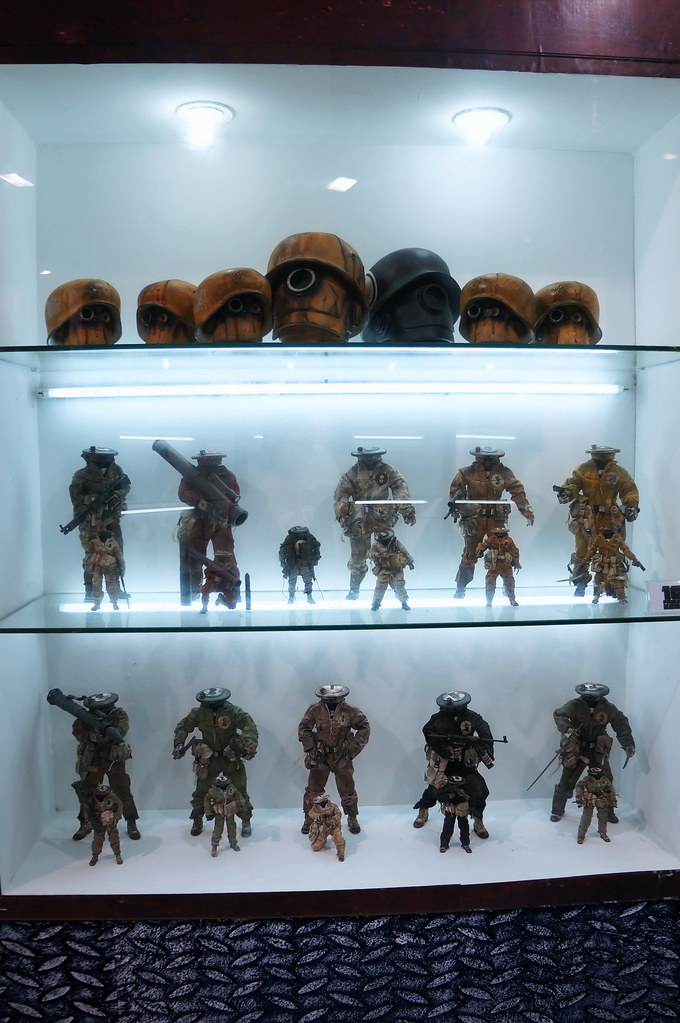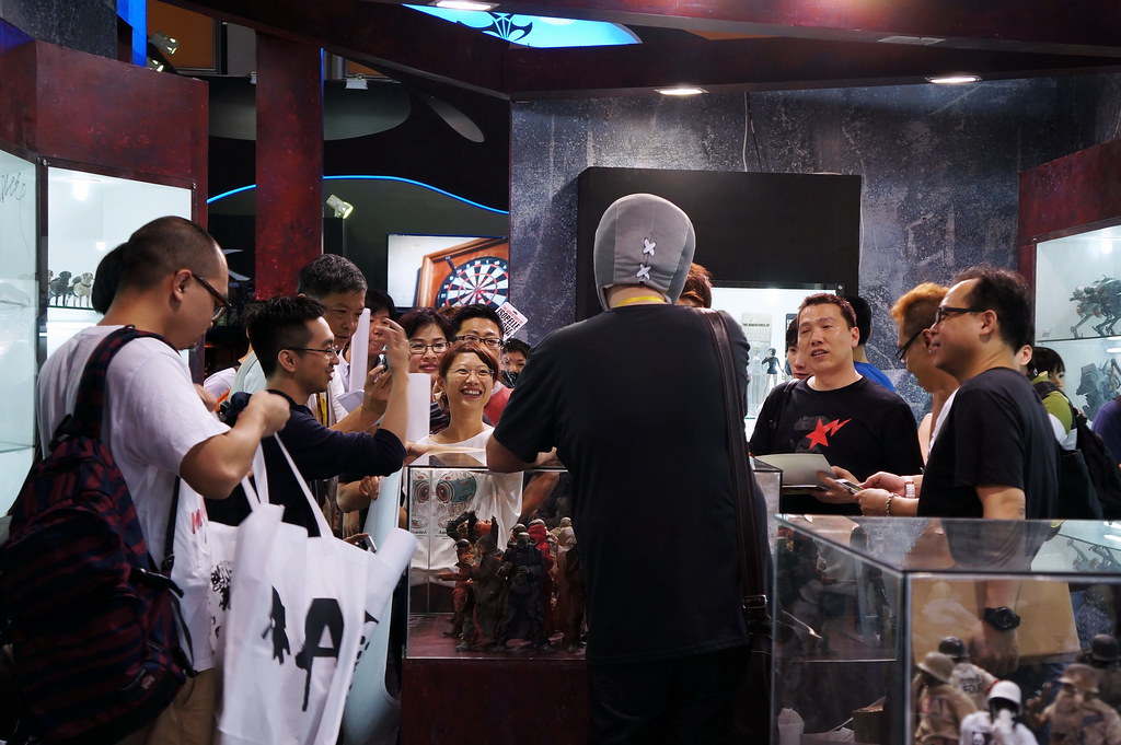 除了在會場有販售限定品之外,也展出了多款尚未公佈如:TKLUB #4 的原型、陰屍路等等的新作品喔!此外,巨大場景的呈現搭配著舊化的threeA 作品真的是非常的養眼啊!會場甚至還有1:1 Life Size 真人比例的Golden Dolphin 與Peppermint Grove!廢話不多說,各位玩具人快來好好欣賞一下吧!