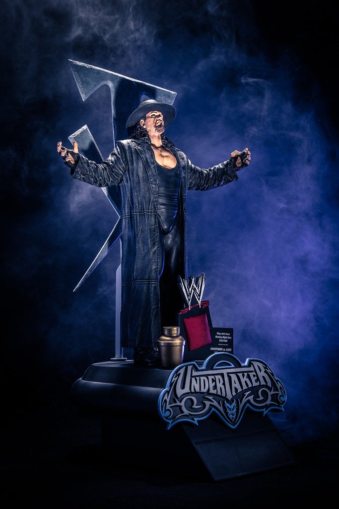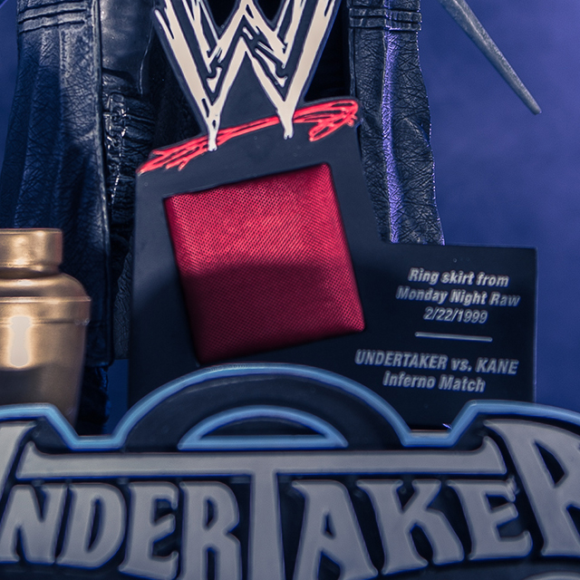 全球限定850組,每一款皆會在底座上附贈一塊擂臺裙(ring skirt),出自於“送葬者” 1999 年2月22日與他的宿敵“KANE”比賽所使用的實際物品。