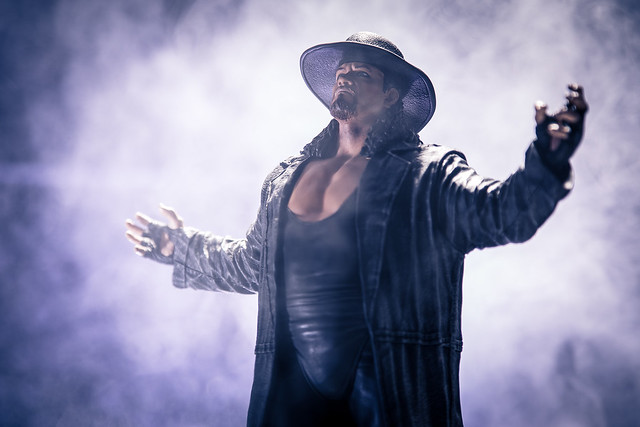 “送葬者” 擁有許多經典的必殺絕技(Finishing moves),如黑暗壓制(dark pin)、喉輪落(Choke Slam)、最終旅程(Last Ride Power Bomb)、地獄之門三角鎖(Triangle choke)...等,其中最經典的就是墓碑落下(TombStone Piledriver),每次準備使出此招式時就會擺出割喉的動作引爆現場氣氛,並且在壓制對手時會翻白眼、吐出長長的舌頭,更為他的角色增添詭譎的氣氛。