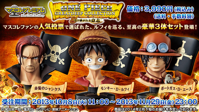 海賊王知名的頭像收藏系列“ワンピースグレートディープコレクション”將推出全新升級版本的「繼承下來的意志」篇(受け継がれる意志)。這一個系列將收錄了由粉絲所票選出來最具人氣的三款角色,並以全新升級的特別版配色登場!