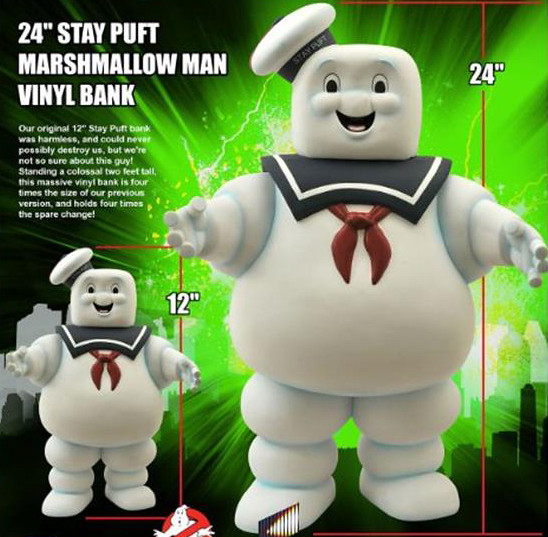 歐美玩具廠商Diamond Select Toys 繼2011年所發行的夜光版之後,宣布發行超巨大24 吋 棉花糖寶寶(Stay Puft Marshmallow Man)存錢筒。