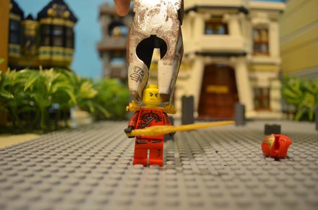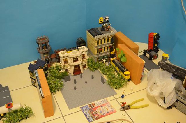接下來是拍片場地, 我在我家地版上搭了一個樂高的景, 如下圖所示: