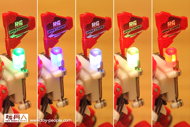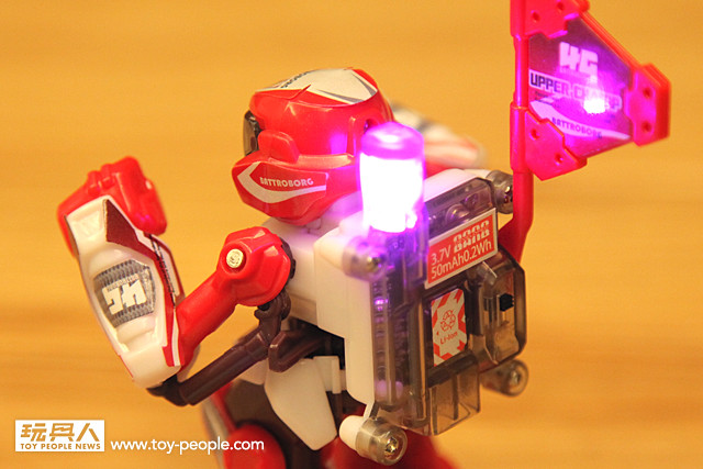 ▼ 每一個機器人的背後都有LED 燈顯示狀態,以綠→藍→白→黃→紅 來表示體力。除此之外另能夠以紫色來顯示特殊狀態。