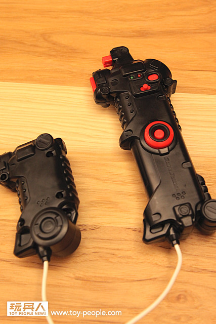 ▼ 左右手控制器,左短右長一組。基本上只要執行“配對”指令,控制器與機器人是可相互交替使用的,但『鋼鐵拳擊手4G』最多支援到20 個玩家對戰,所以玩家一多就容易混淆,貼上貼紙識別不同專用的機體與控制器吧!