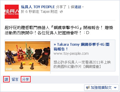 2.「玩具人 TOY PEOPLE NEWS Facebook 粉絲團」上側。