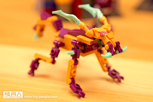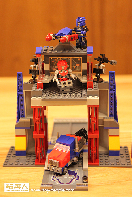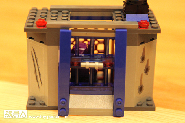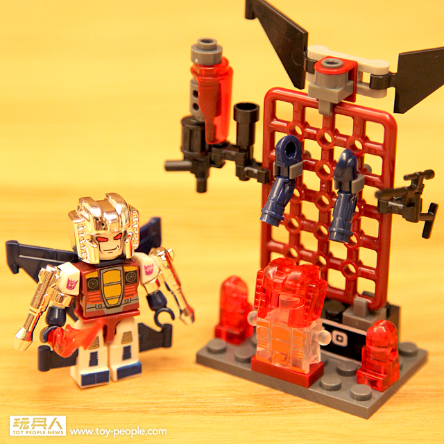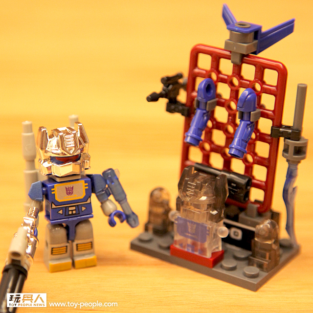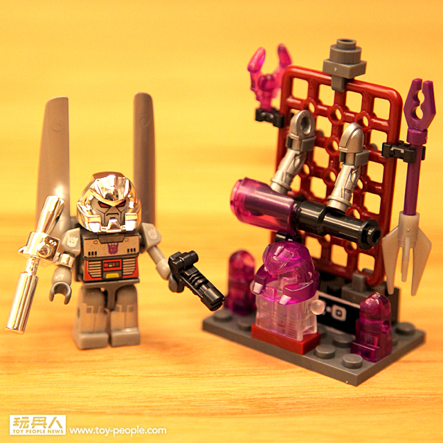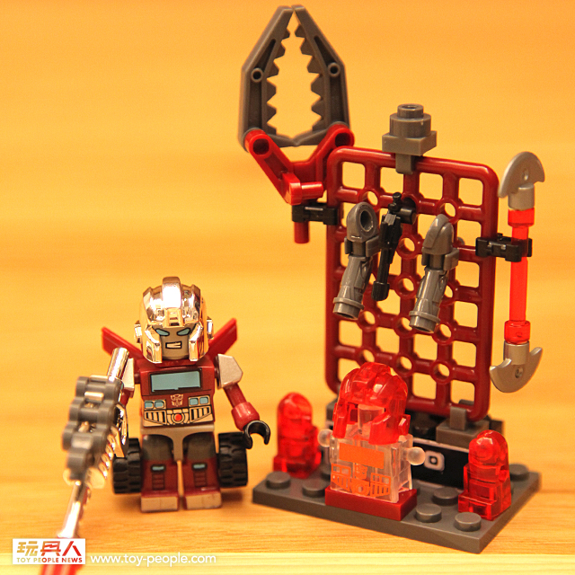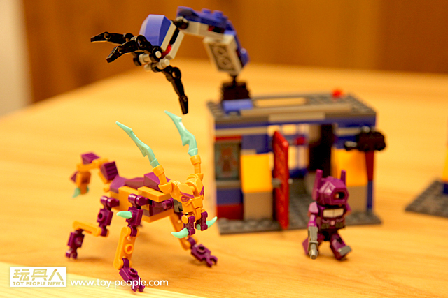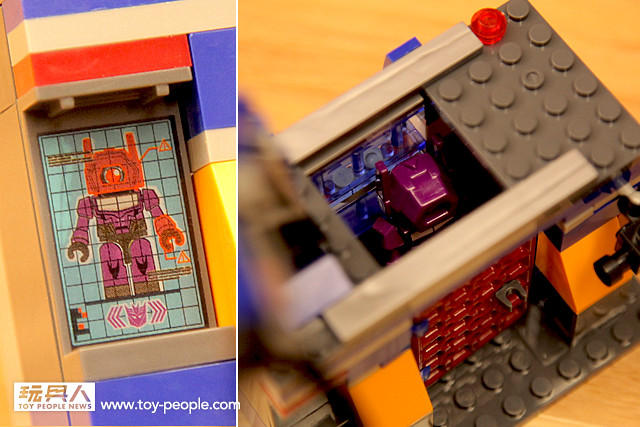 ▼ 首先是基地左側的監牢,囚禁的是震波(Shockwave)。並有一款積木打造的掠獸金剛魔獸型態的“分屍魔”(RipperSnapper),前來襲擊博派基地。