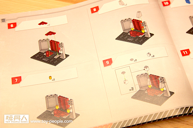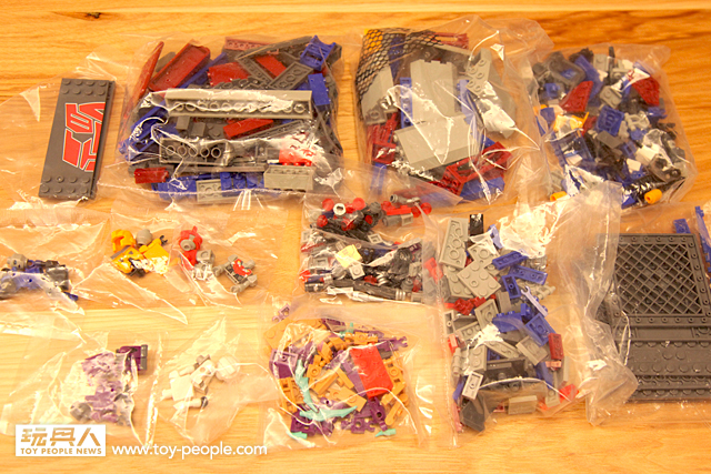 ▼ 孩之寶使用了特殊的分裝方式,依照組裝順序與形狀分類,一共有8 大5 小包共461 塊積木組成。