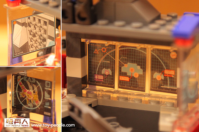 ▼ 指揮塔上的銀幕分別顯示監牢的監視器畫面(仔細留意監視器的位置,真的很講究的做出一模一樣的方位喔!)雷達捕捉到分屍魔的掃瞄畫面,與一具超大的基地雷達圖,真的把指揮塔的細節一一做到位!