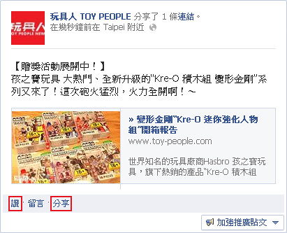 2.「玩具人 TOY PEOPLE NEWS Facebook 粉絲團」上側。