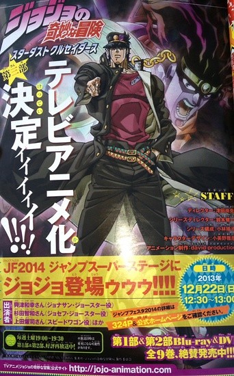 2014年3月12日新增JOJO冒險野郎動畫官網第三部人物設定和宣傳照片,預計明年2014年4月4日在日本開始撥映電視動畫版《JOJO冒險野郎》第三部,情報提供給喜歡《JOJO冒險野郎》的玩具人參考。