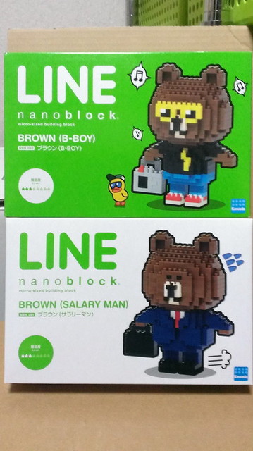可愛的Line 通訊軟體的角色人物 熊大和日本 Nanoblock 迷你積木玩具廠商,合作推出 LINE Brown (B-Boy) 和LINE Brown (Salary Man) 有熊大B-Boy和上班族兩款,此商品已在今年2013年暑假8月推出,單款售價約3,890元日幣,有興趣的玩具人可以前往下方出處參考。