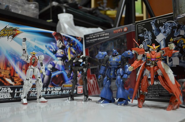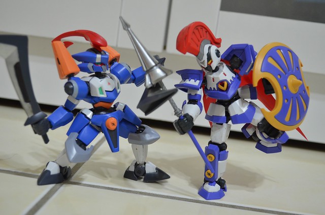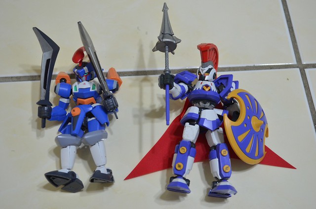 首先是兩位主角, 阿基里斯跟柏修斯, 兩支的可動性都很高, 不過拿來拍影片的話柏修斯比較好用,因為阿基里斯是骨架再貼上裝甲的, 那些裝甲跟身上的零件很容易就在動人偶的過程中掉下來,而柏修斯雖然比較簡單, 但是都是一體成型的, 反而不會有掉件的問題。
