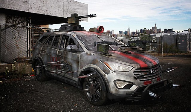 最後勝利的設計者是Anson Kou,現代汽車也隨即請Galpin Auto Sports 工作室依照Anson Kou 的設計圖樣打造出來這台以Santa Fe 車款為基礎建構出來的「殭屍生存號」,並於今年剛結束的「紐約國際動漫展」(New York Comic Con;NYCC)會場上展出,小編只能說這車款真的是無敵啊!有了這台車,就算殭屍大軍來襲也都是一塊小蛋糕啊!