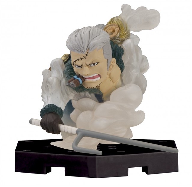 A 賞是海軍軍艦,B、C 賞則是把海軍三大將「赤犬」「黄猿」真實地立體化。其它,還包含了玻璃杯、檔案夾組、洗臉巾、磁鐵...等各種充實的生活小物。除此之外,能夠將複數零件組合裝飾的『Figure+アルファ』(フィギュアルファ)也在本次的一番賞登場。LAST ONE 賞則是原‧海軍三大將的青雉『庫山』,也以全新造型現身。可說是一個完整發揮“海軍”主題魅力的系列啊!~