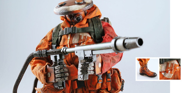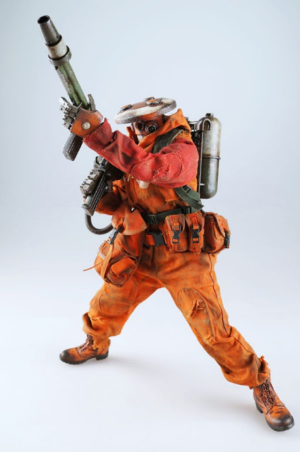 threeA 將於今天發行Adventure Kartel 系列新角色“HOT FOOT”,我們首度在去年的萬聖節見到這個角色的插畫,後來在今年SDCC 的threeA 新型錄中見到實品。這一個角色使用了Adventure Kartel 系列全新的頭雕,以及配備了也是過去未曾見過的火焰放射器裝備。