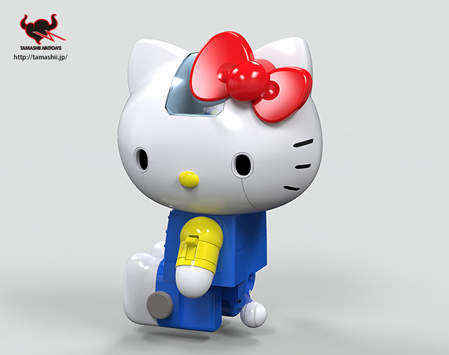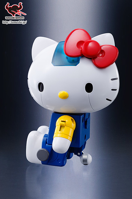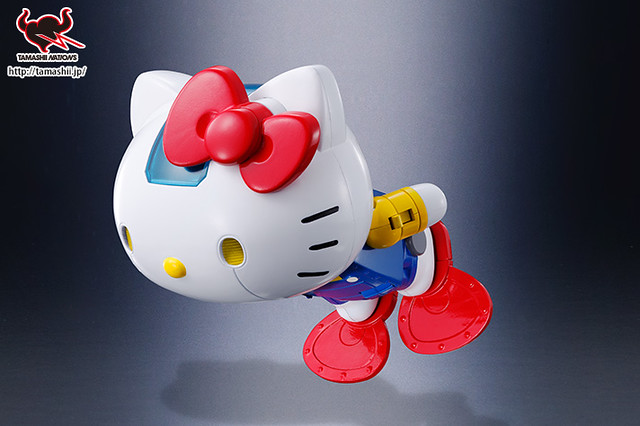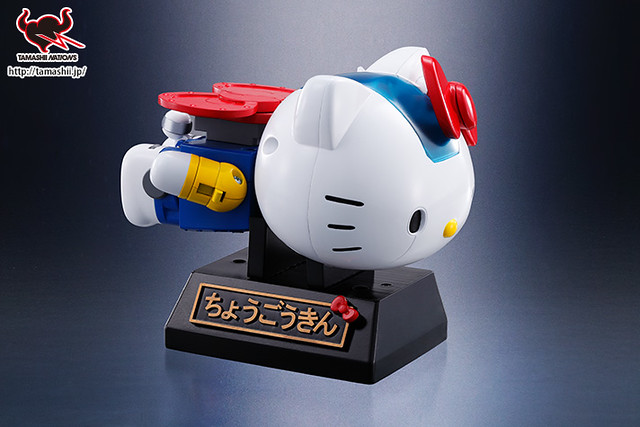 超合金 Hello Kitty 的尺寸高約10.5公分,以超合金系列的機器人概念設計,約有行走狀態、飛行狀態、水中狀態等等3種的變形功能可以切換,頭部的駕駛艙也可以打開,還可以放入駕駛員Hello Kitty Mini Figure,售價約 4,400元日幣,喜歡Hello Kitty的玩具人可以考慮收藏一下歐!