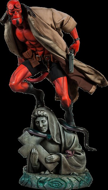 為了追求能夠重現原作、捕捉「Mike Mignola」漫畫當中的角色精髓,特別使用了一種高度反差的塗裝技巧,來呈現出原作當中的神秘詭蹫的世界觀。踩在墓碑上的Hellboy 全高約23英吋(58.42 公分),並穿著了一件手工縫製的短褲,以及一件可脫下、Hellboy 招牌的防風大衣,腰間繫上了附屬道具袋、裝飾品的腰帶。